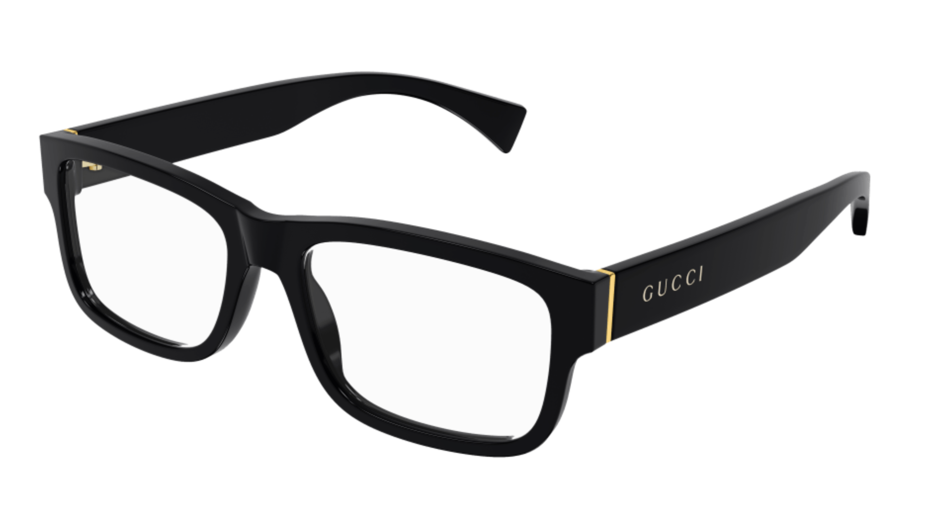 Features: Thick rim frame with white GUCCI on temples. Unisex.