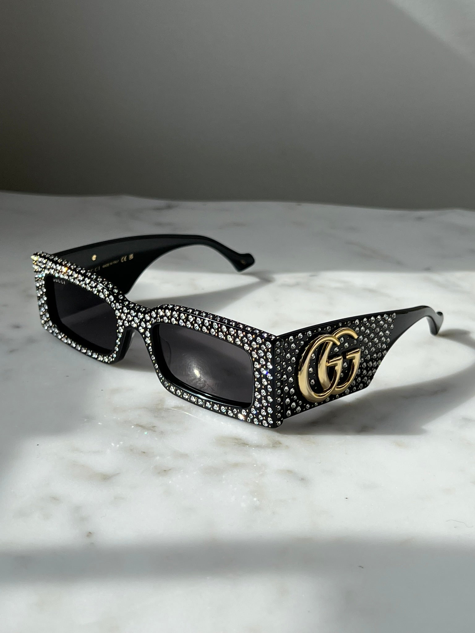 Gucci GG1425S Crystal Rectangle Sunglasses in Black