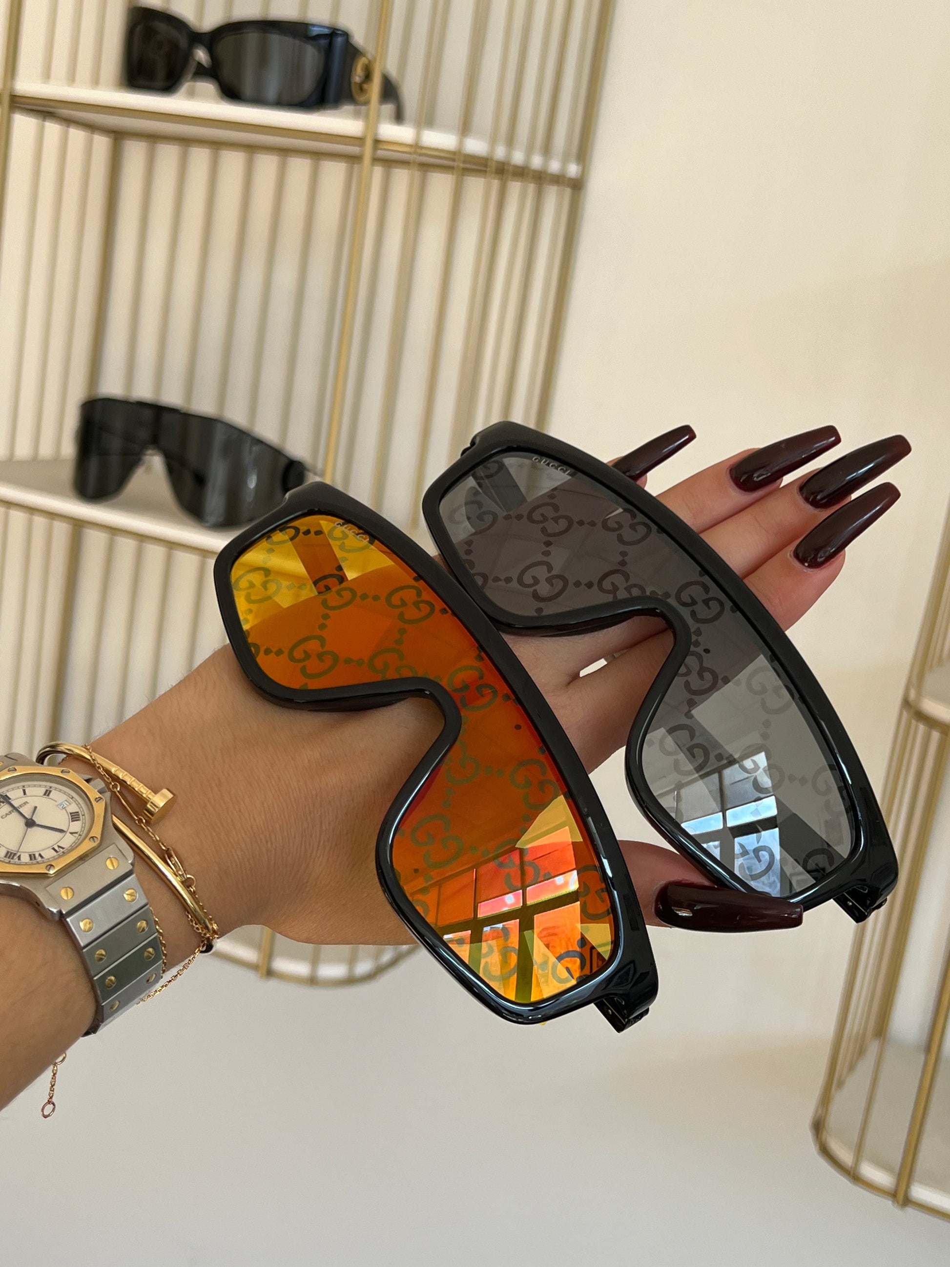Gucci GG1736S Mirror Lens Shield Sunglasses in Black Orange