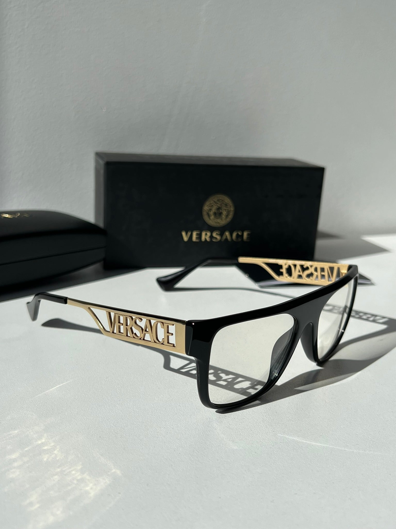 Thick leg with 3D VERSACE on temples in black.